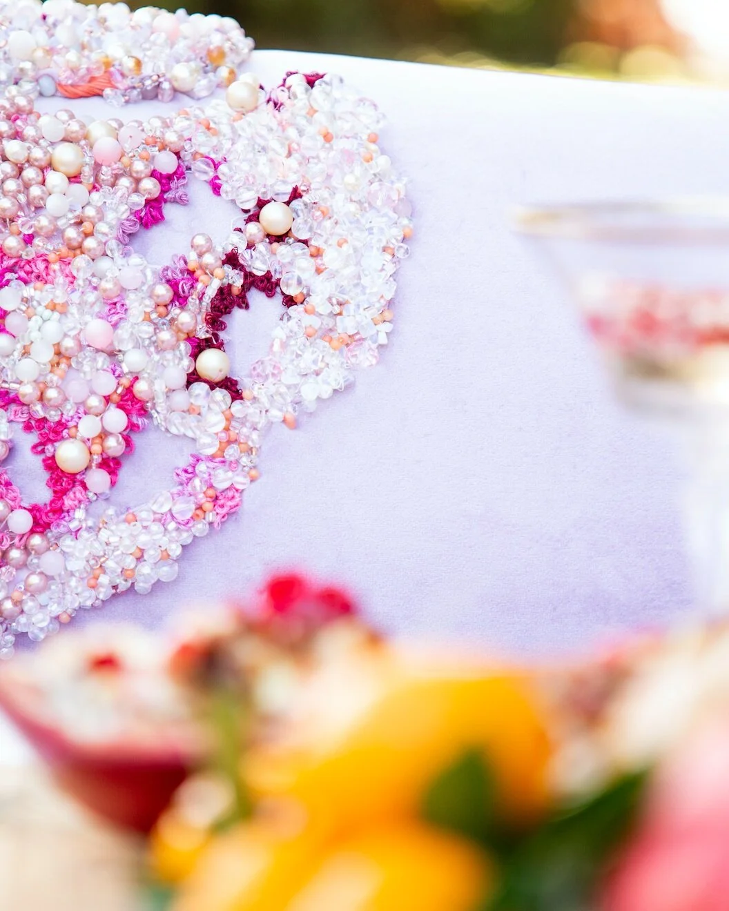 “ For the same way stains of a discarded fabric mark a moment in time, these tambour pieces mimic the essence of hundreds of hours of handwork bringing attention to the beautiful qualities of time; Lavender Aurora sheds light conceptually on juxtaposition, functionality, and dysfunction, and taking discarded items and bringing them into an opulent and luxury setting.”